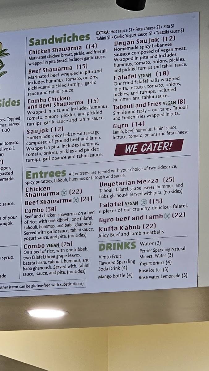 Marinated beef, pickle, wrapped in pita bread. Includes garlic sauce