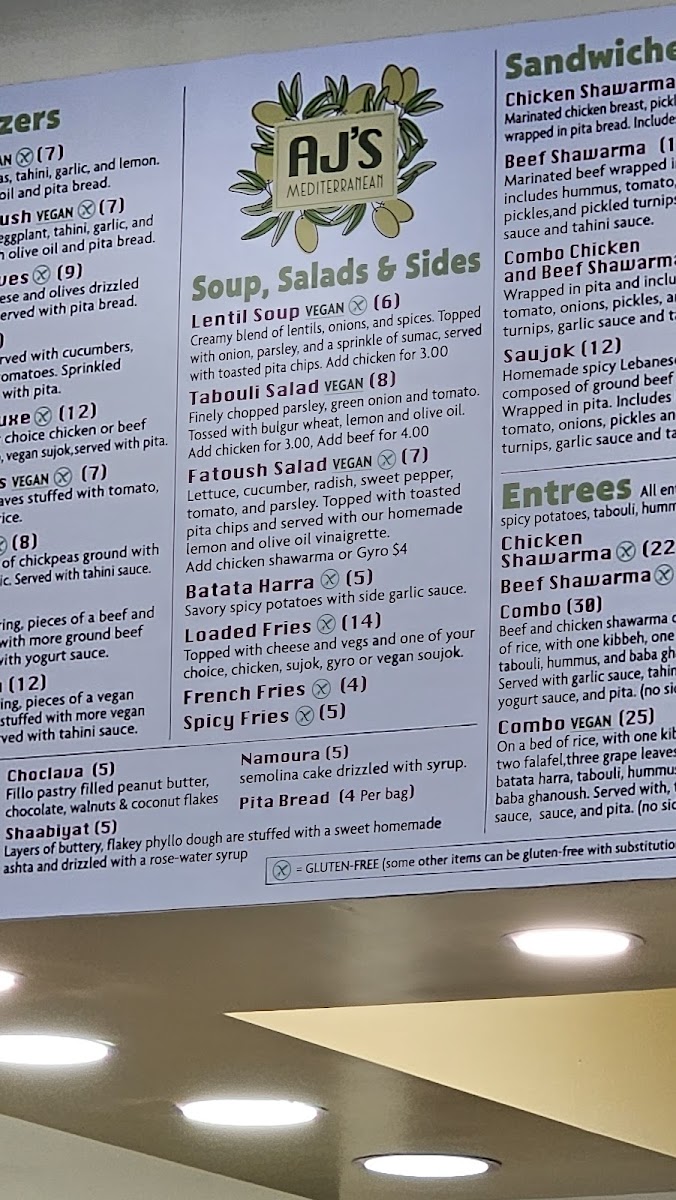Gyro served with choice of Batata Harra, Fatoush, Fries, Lentil Soup, Rice, Soup, Spicy Fries, or Tabouli.