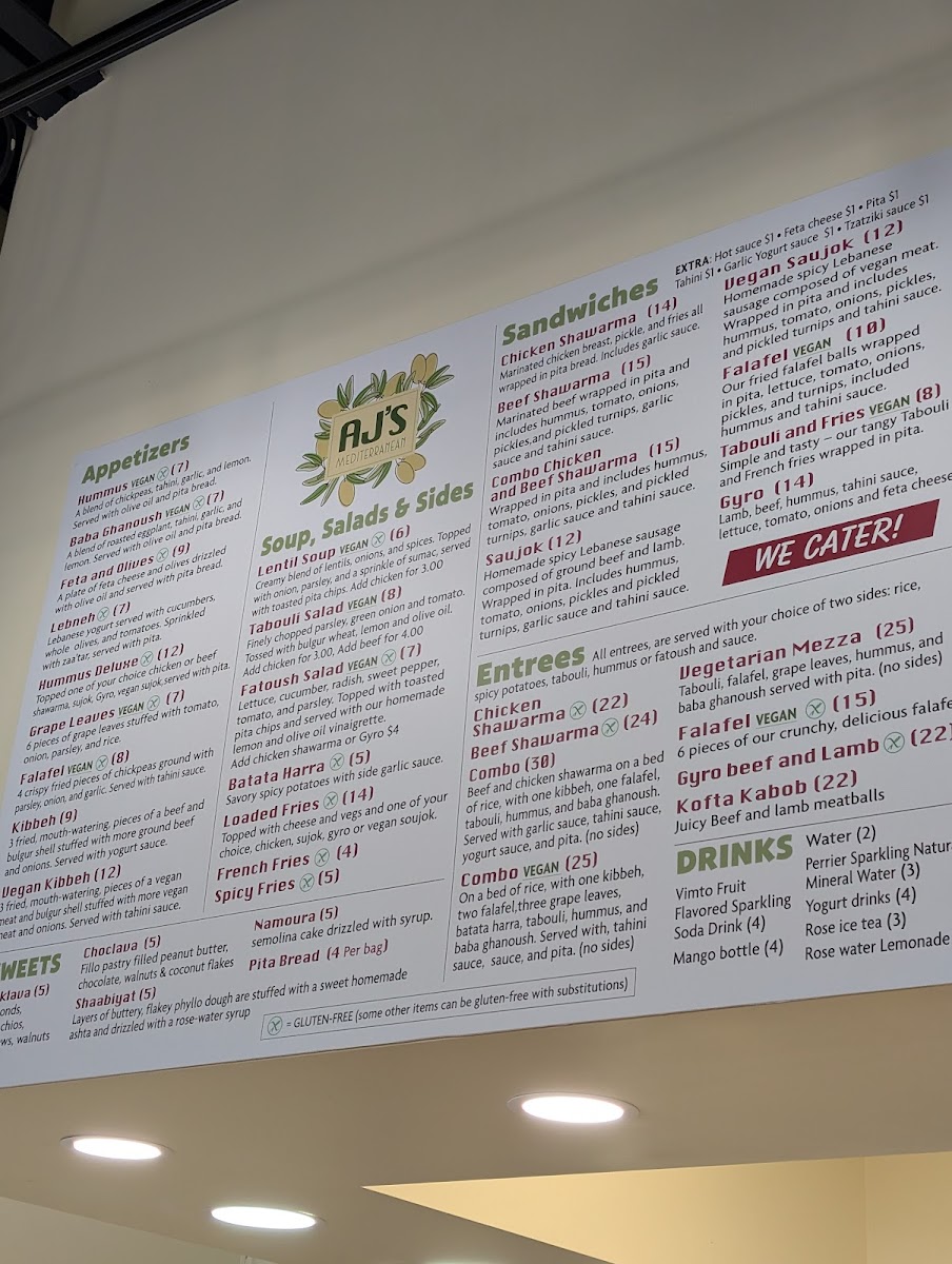 Homemade spicy Lebanese sausage composed of ground beef and lamb. Wrapped in pita and includes hummus, tomato, onions, pickles, and pickled turnips garlic sauce and tahini sauce.
